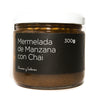 Deliciosa mermelada de manzanas mexicanas, con una mezcla de té chai. El té es importado y con una calidad inigualable. Bajo en azúcar. Sugerido para relleno de pollo o pavo, resalta el sabor del queso y de un pan horneado